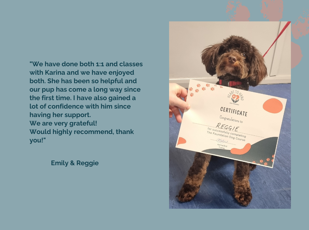 If you would like to find out more please contact me for a free 15 minute phone call, no obligation, no pressure, just a conversation to understand yours and your dogs needs and discuss next steps.