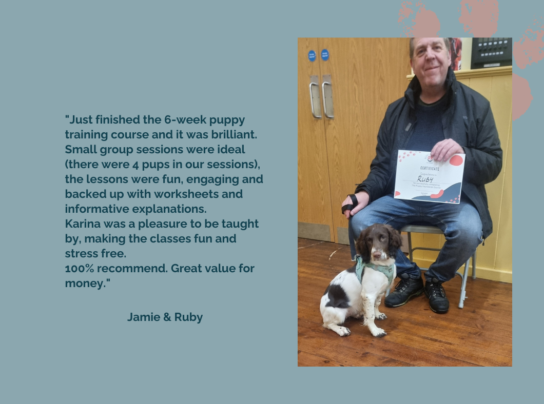 I have been coached and assessed by Steve Mann, Founder of IMDT and the author of Easy Peasy Puppy Squeezy book.